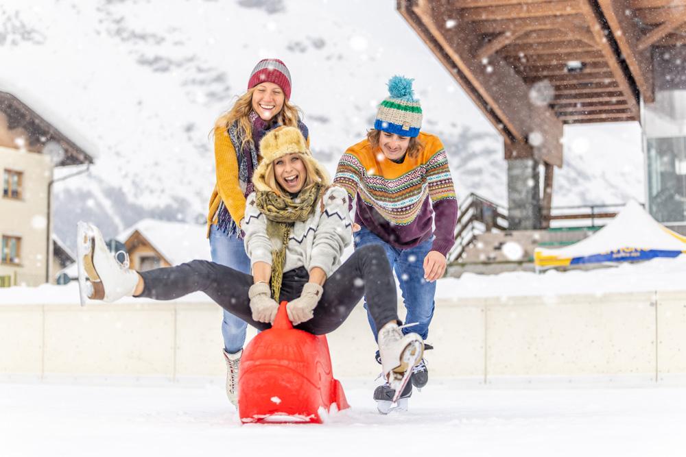 Il pattinaggio su ghiaccio è uno sport divertente adatto sia alle famiglie, che a gruppi di amici che vogliono divertirsi dopo lo sci. Una volta tolti i pattini, assapora una tazza di cioccolata calda nella tribuna riscaldata con vista direttamente sulla pista.